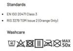 - Certified to EN ISO 20471 after 50x washes